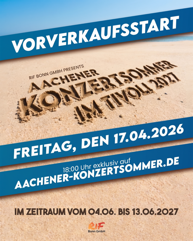 Der nächste wichtige Schritt steht bereits fest: Der Vorverkauf sowie die Umbuchung für bestehende Ticketinhaber starten am Freitag, den 17.04.2026 um 18:00 Uhr. Die Rückgabe bzw. Rückabwicklung beginnt am Montag, den 20.04.2026 um 16:00 Uhr. Alle Informationen hierzu werden rechtzeitig hier auf www.aachener-konzertsommer.de bereitgestellt.